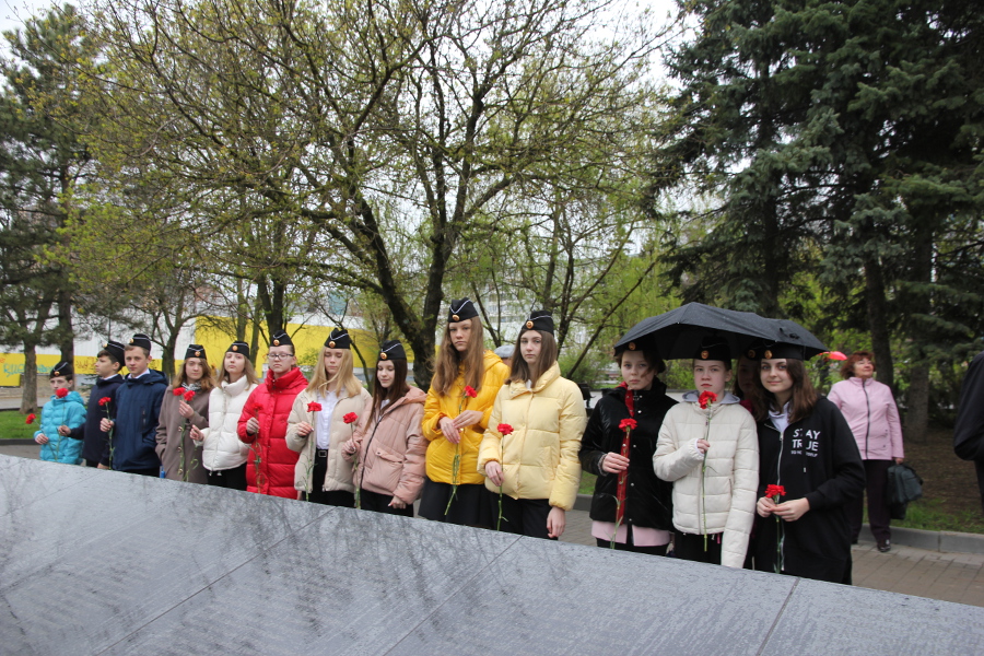 Затем состоялось торжественное мероприятие у мемориала героям Чернобыльской славы на проспекте Шолохова, в котором, в том числе, приняли участие члены общественной организации "Чернобылец Дона".