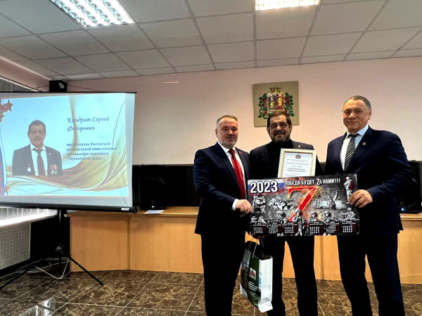 Руководители Ростовской региональной общественной организации инвалидов "Чернобылец Дона" Киндрат С.Ф. и Крайзман Е.Б. приняли участие в официальном приеме в администрации Ворошиловского района, приуроченном ко Дню Защитника Отечества 23 февраля. На прием были приглашены ветераны Великой Отечественной войны и локальных военных конфликтов, ликвидаторы радиационных катастроф, участники СВО.