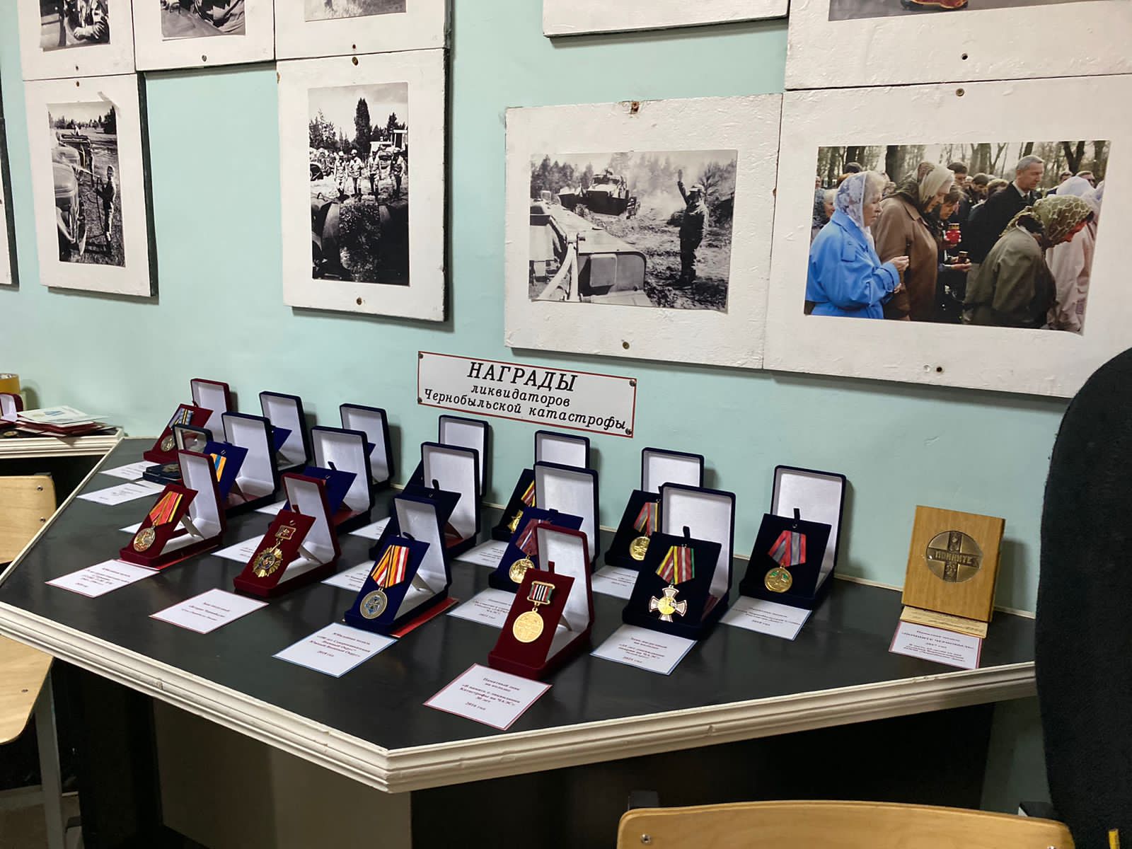 Депутат городской Думы Ломиворотов В.Г., председатель РРООИ "Чернобылец Дона" Киндрат С.Ф. и директор ОПФ БФ "Пересвет" Грызлов А.Д. в обновленном Музее региональной организации.