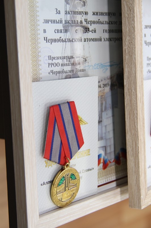 В церемонии награждения памятными медалями «Аллея Чернобыльской Славы», почетными грамотами и благодарственными письмами приняли участие заместитель главы администрации города Виктор Синюгин, заместитель председателя городской Думы Андрей Карабедов, председатель ростовской региональной организации инвалидов «Чернобылец Дона» Сергей Киндрат, председатель новочеркасской организации «Чернобыль» Сергей Рыбальченко.